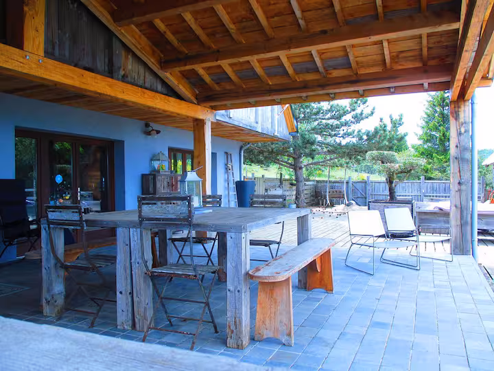 Les vastes pièces de vie, les grandes terrasses et jardins ouvertes sur la prairie, le jacuzzi extérieur et les espaces de réception offrent un cadre idéal pour se retrouver, célébrer ou simplement se ressourcer.