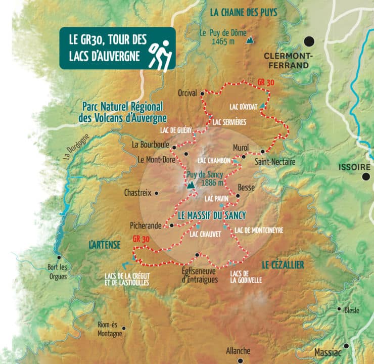 Le GR30 fait le tour des lacs d’Auvergne et traverse le Massif du Sancy.